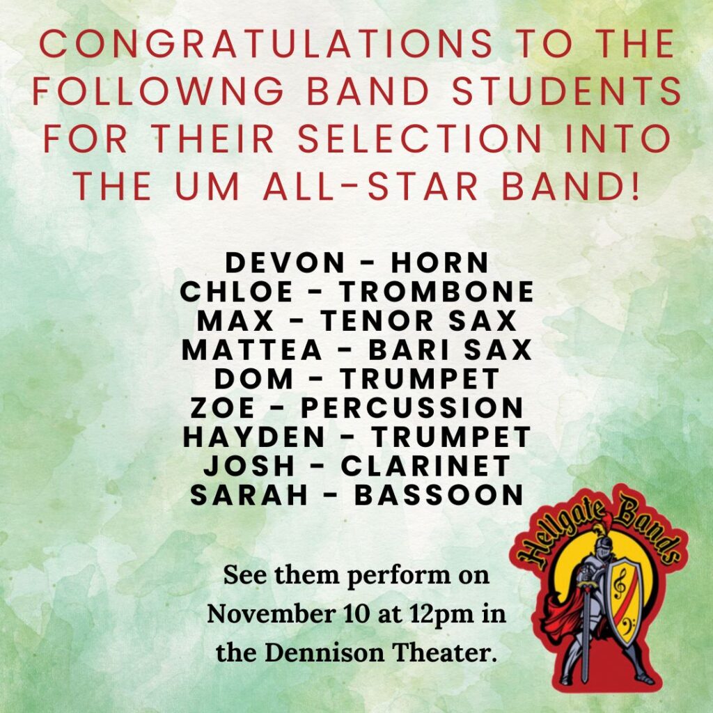 Congratulations to all our nine band members who have been selected for the UM All-Star Band!